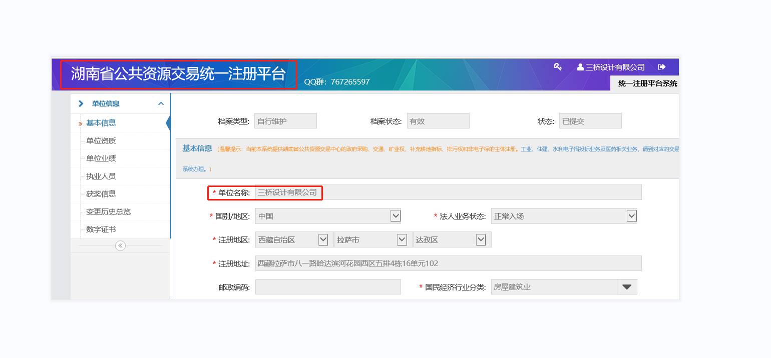 恭贺三桥设计成功入驻湖南省公共资源交易统一注册平台!