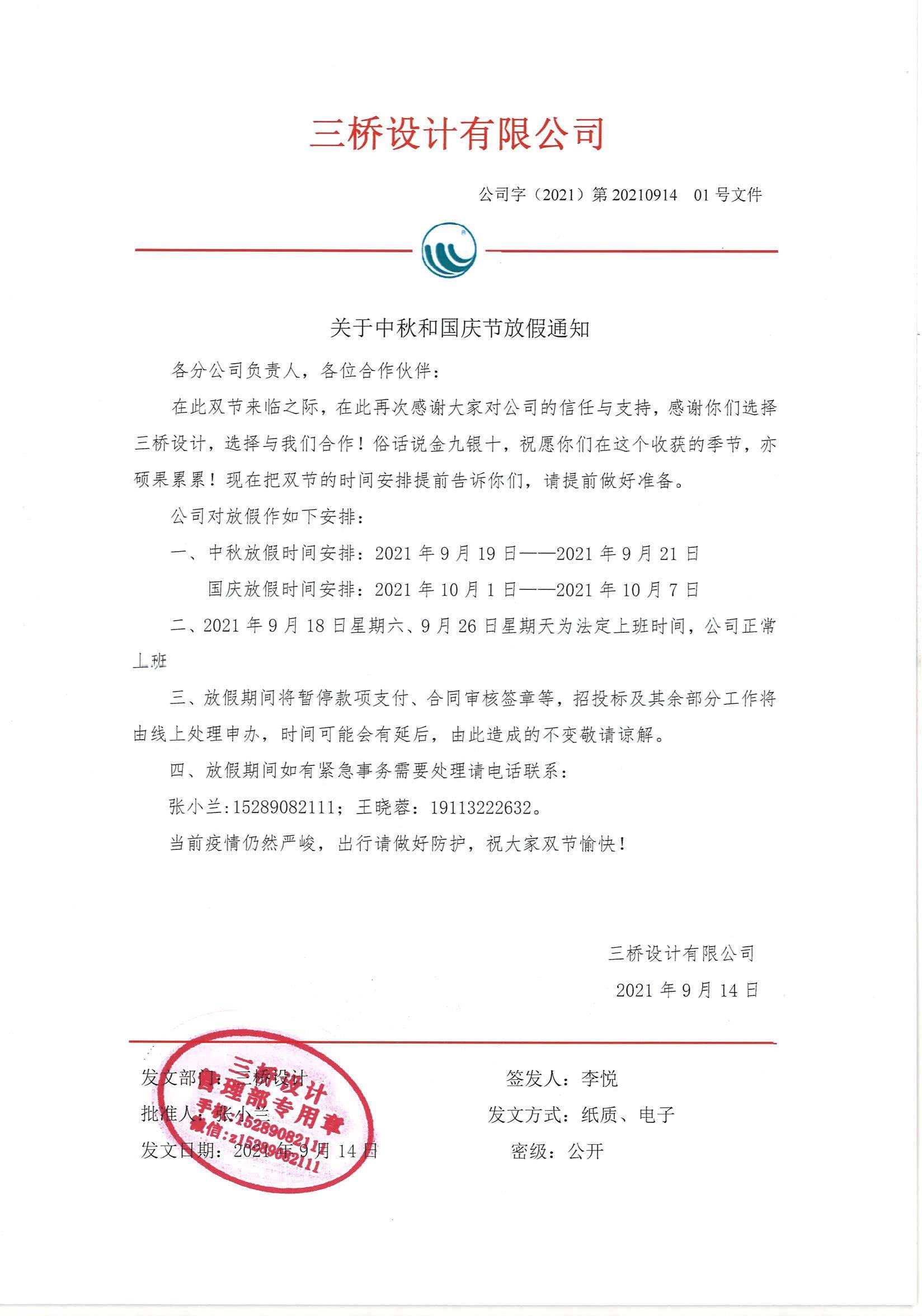 三桥设计端午放假安排通知